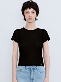 WOOL TENCEL HALF TEE_BLACK
