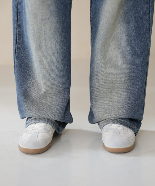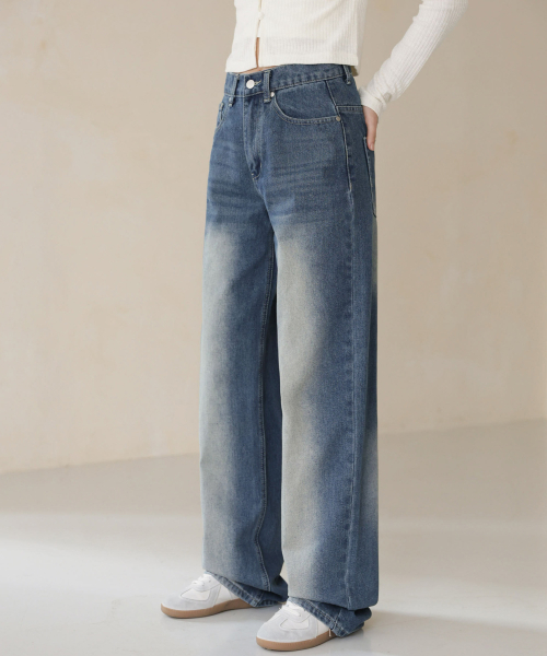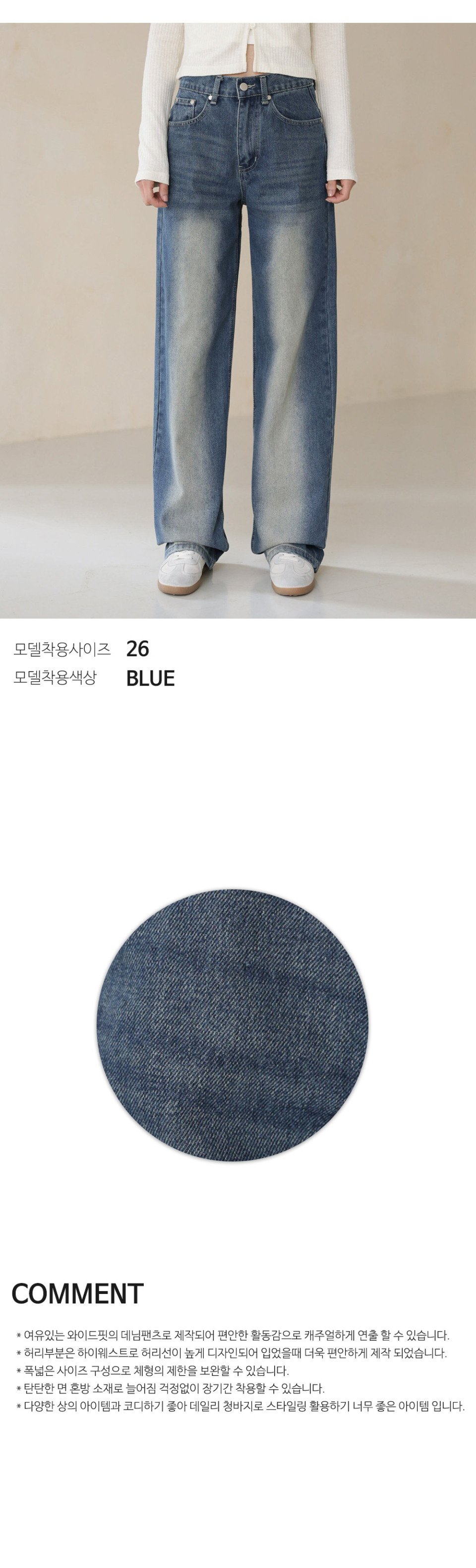 여성 워싱 롱 와이드 데님 팬츠 (연청)