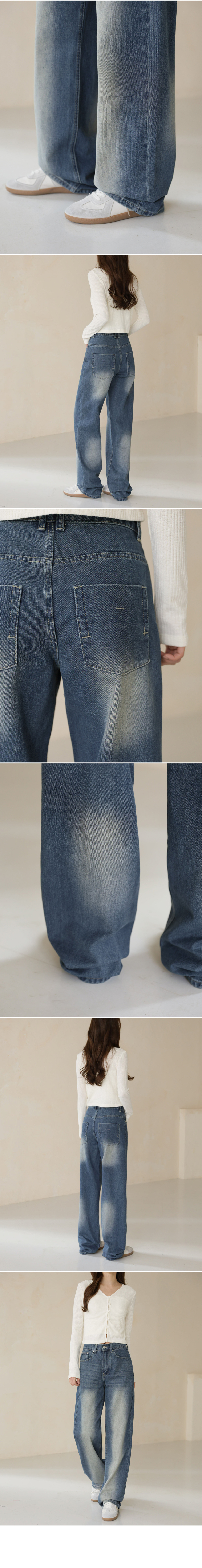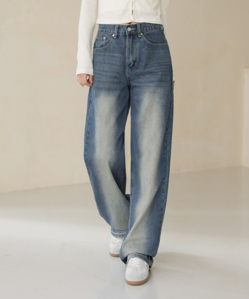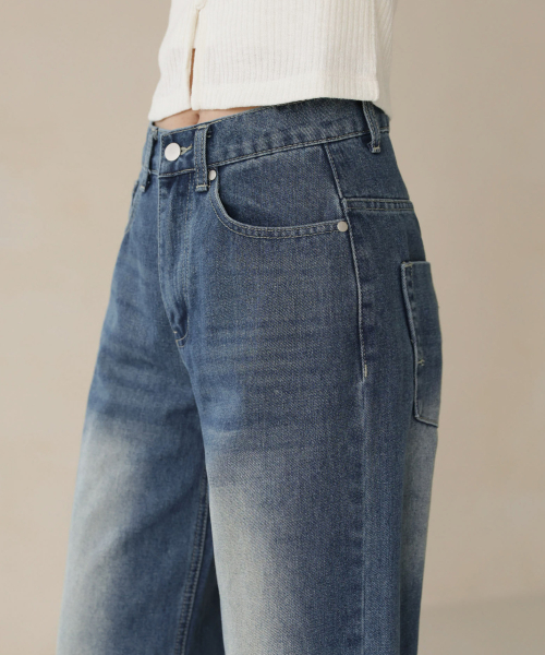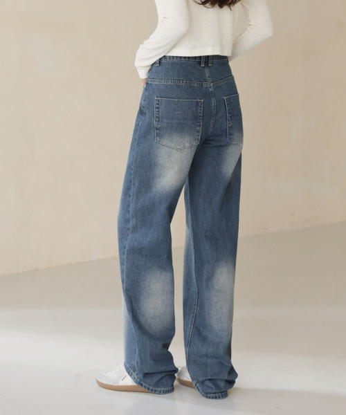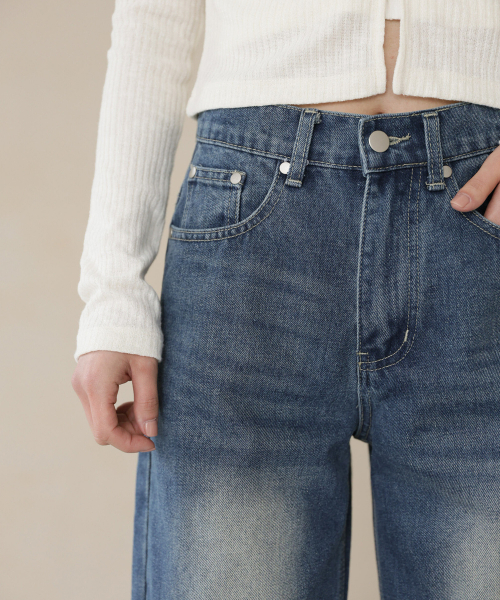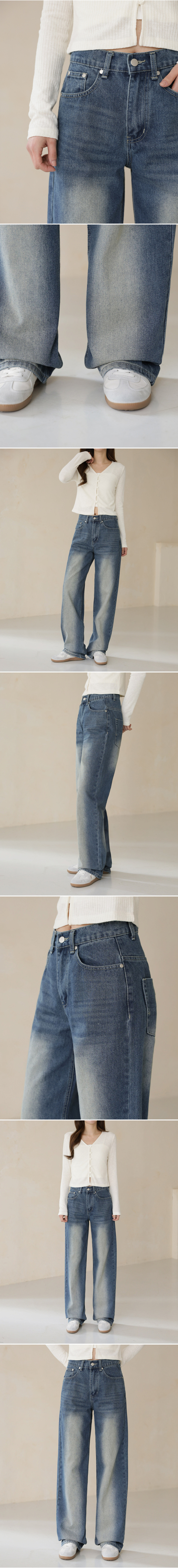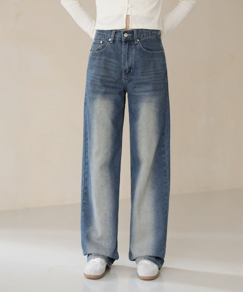 하이웨스트 브러쉬워싱 롱 와이드 청바지