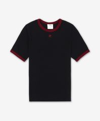 시그니처 콘트라스트 반소매 티셔츠 - 블랙:루비 / 125JTS017JS0203B087