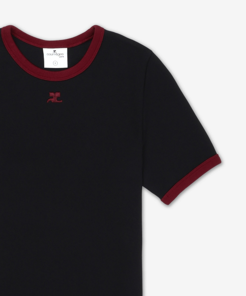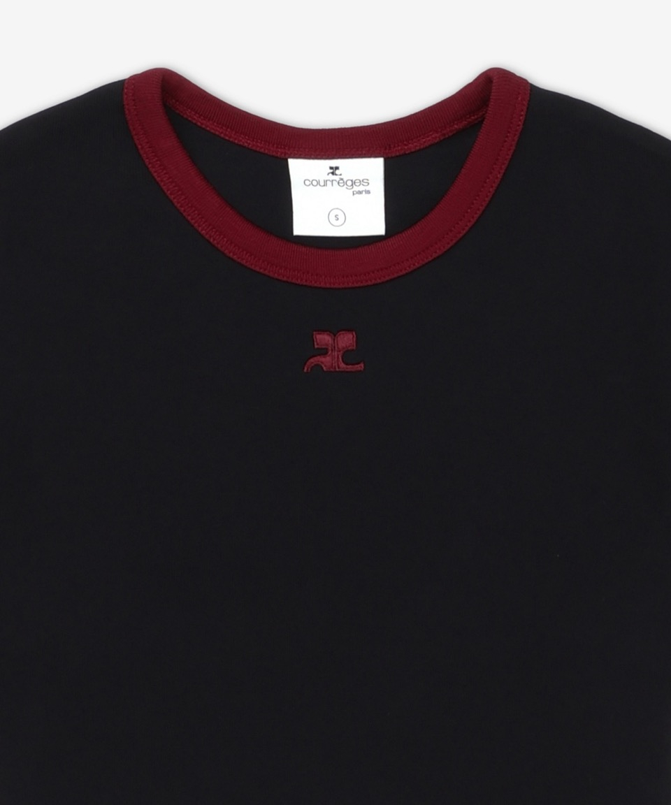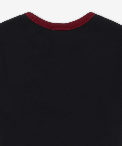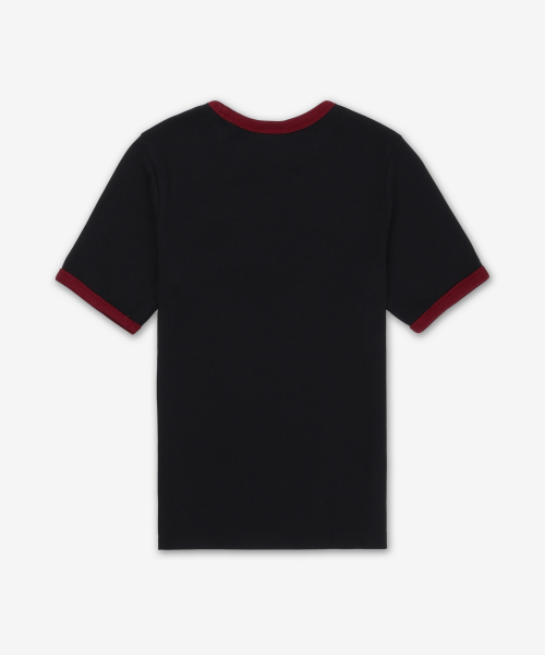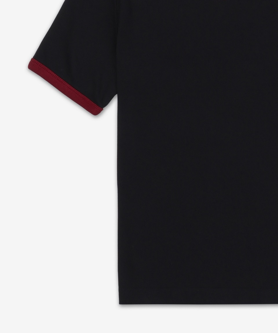 시그니처 콘트라스트 반소매 티셔츠 - 블랙:루비 / 125JTS017JS0203B087
