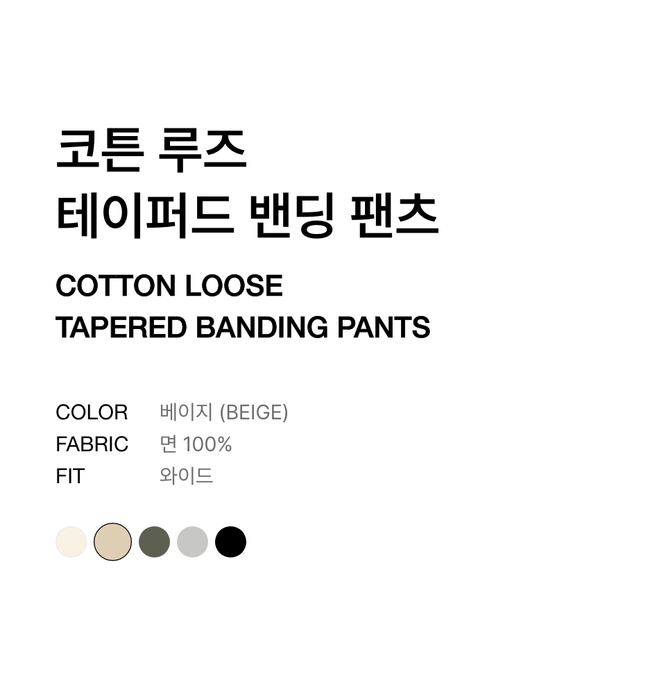 코튼 루즈 테이퍼드 밴딩 팬츠 [베이지]
