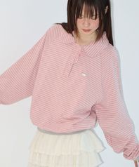 HENRYNECK FRILL POINT SWEATSHIRT PINK GREY STRIPE
