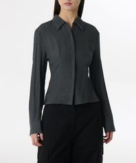 우먼즈 슬림 핏 시어 크링클 셔츠 [다크 그레이]