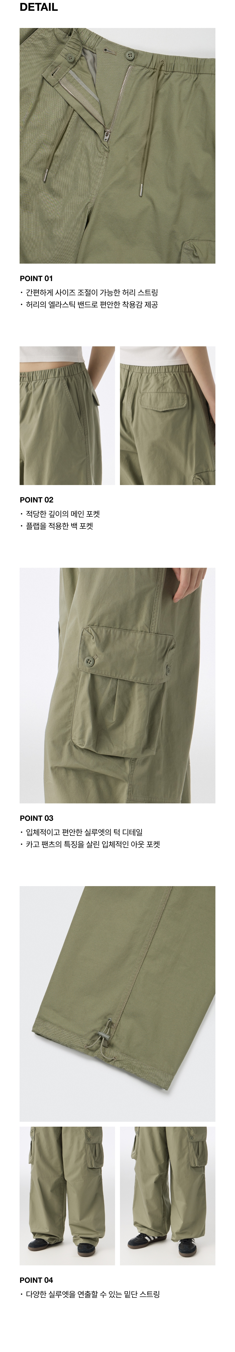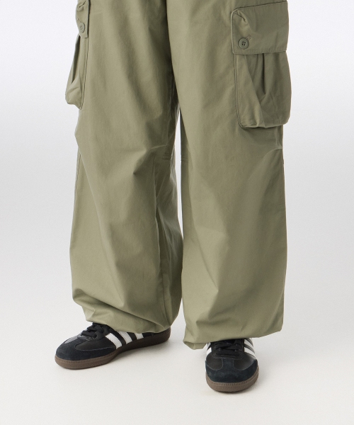 우먼즈 코튼 파라슈트 카고 팬츠 [카키]