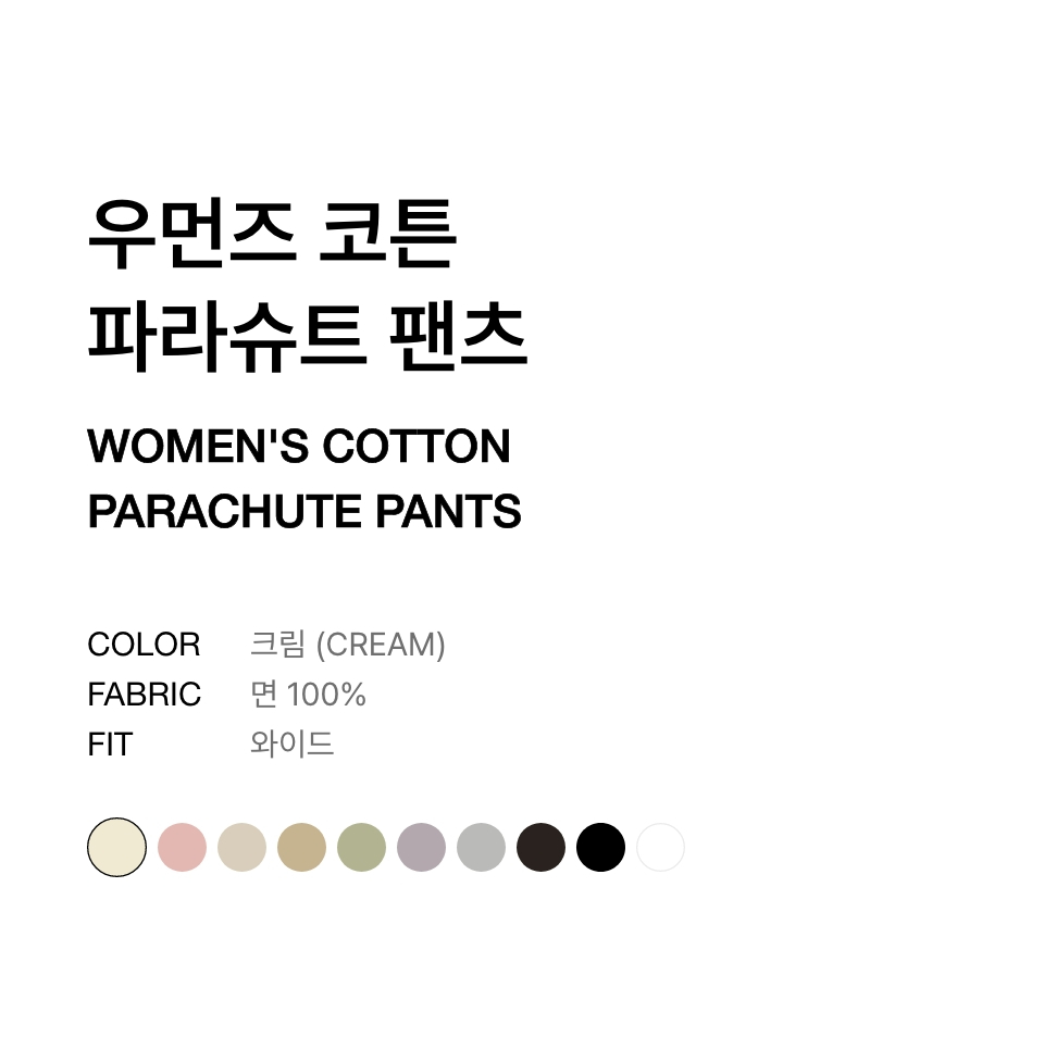 우먼즈 코튼 파라슈트 팬츠 [크림]
