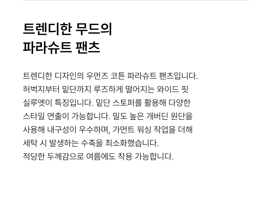 우먼즈 코튼 파라슈트 팬츠 [블랙]