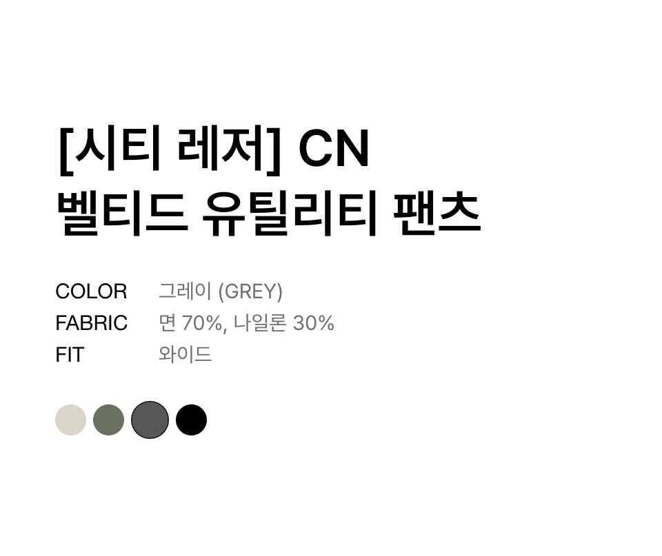 [시티 레저] CN 벨티드 유틸리티 팬츠 [그레이]