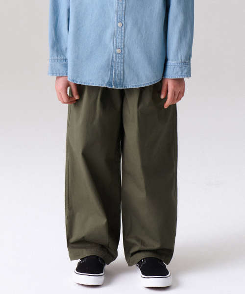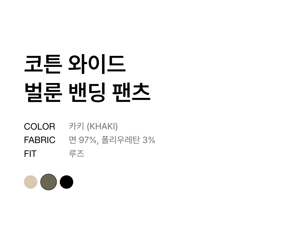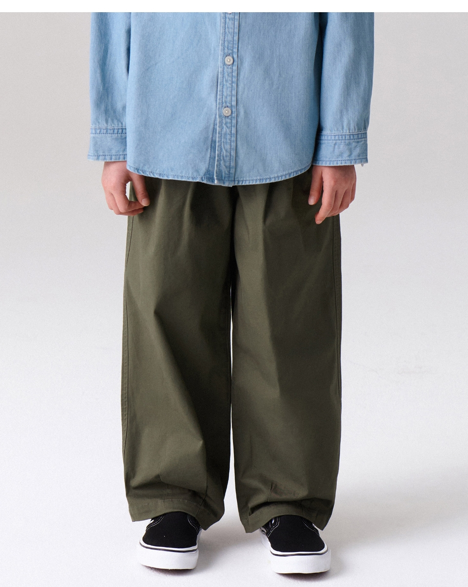 코튼 와이드 벌룬 밴딩 팬츠 [카키]