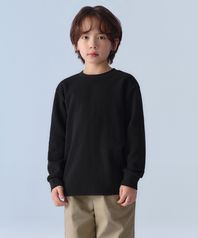 와플 릴렉스드 크루 넥 긴소매 티셔츠 [블랙]