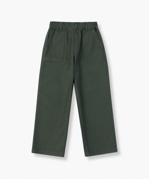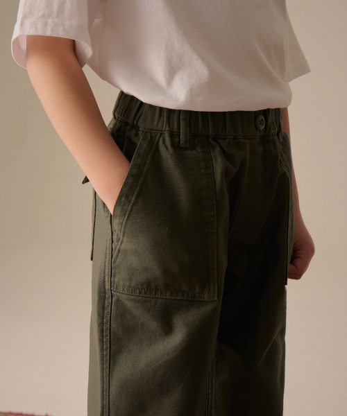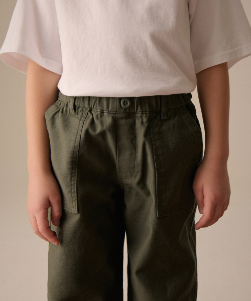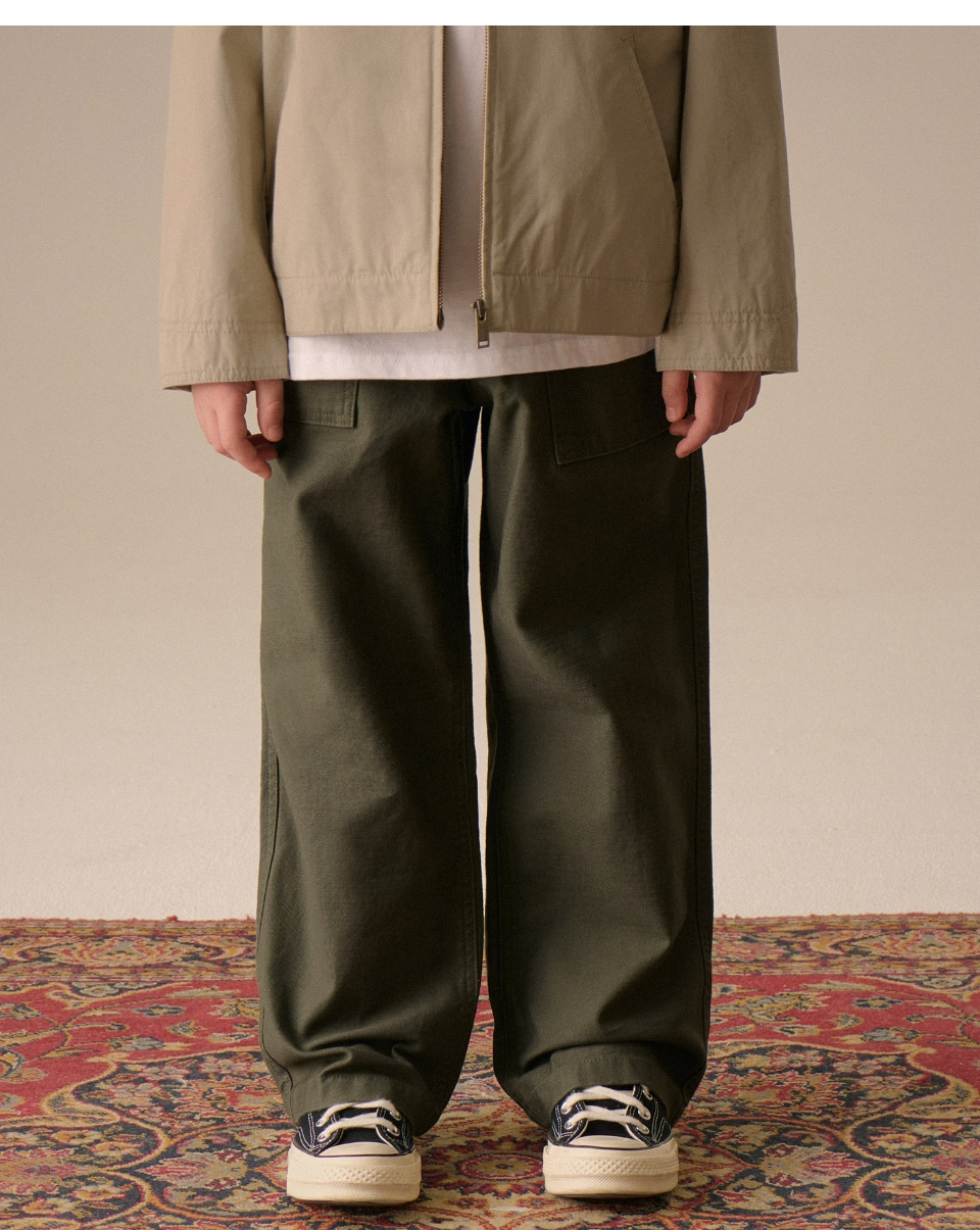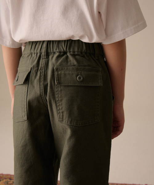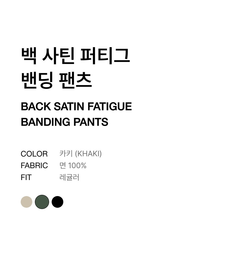 백 사틴 퍼티그 밴딩 팬츠 [카키]