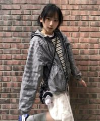 (우먼) 나글란 체크 후드 점퍼-블루