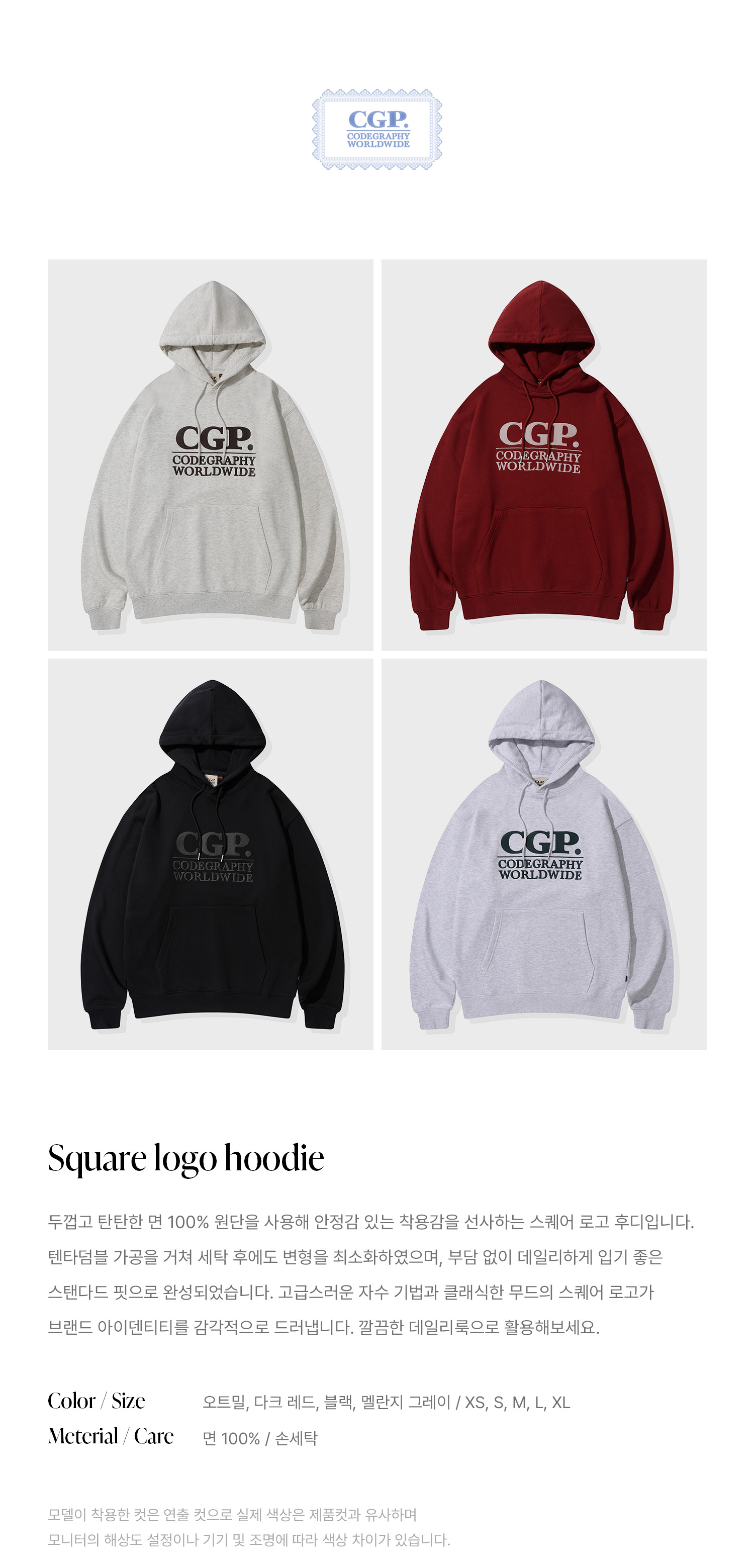 스퀘어 로고 후디_오트밀