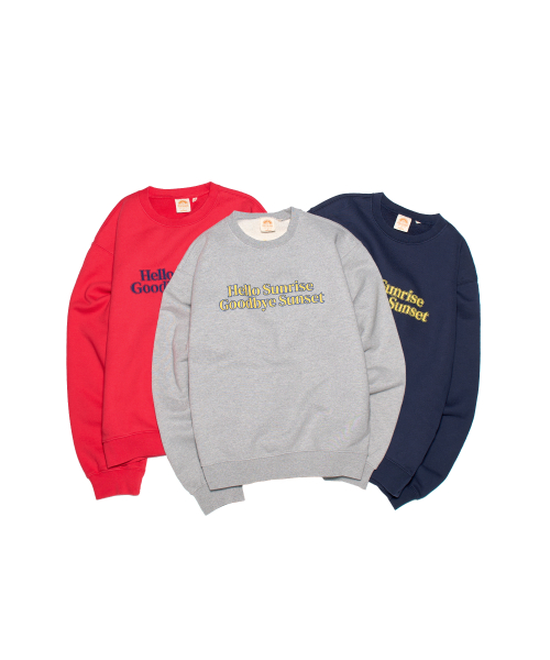 헬로선라이즈 타이포 그래픽이 들어간 스웻셔츠입니다.