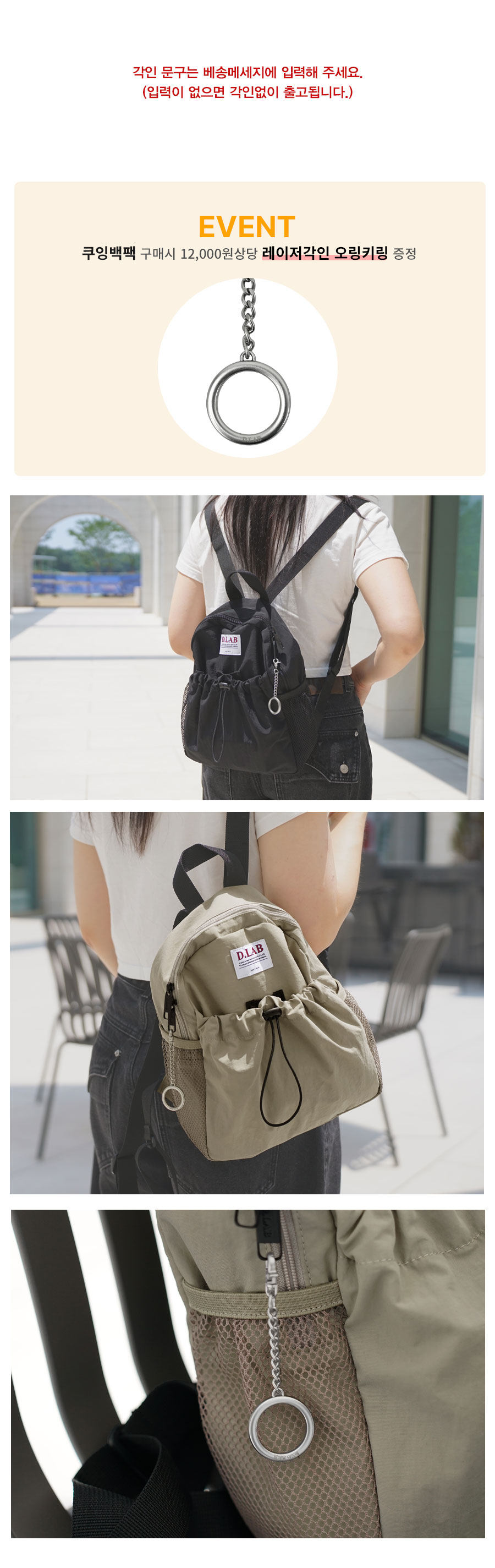 쿠잉 미니 백팩 [레이저각인 오링 키링 증정] - 아이보리