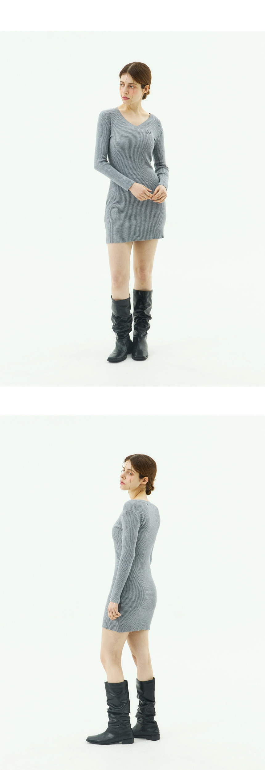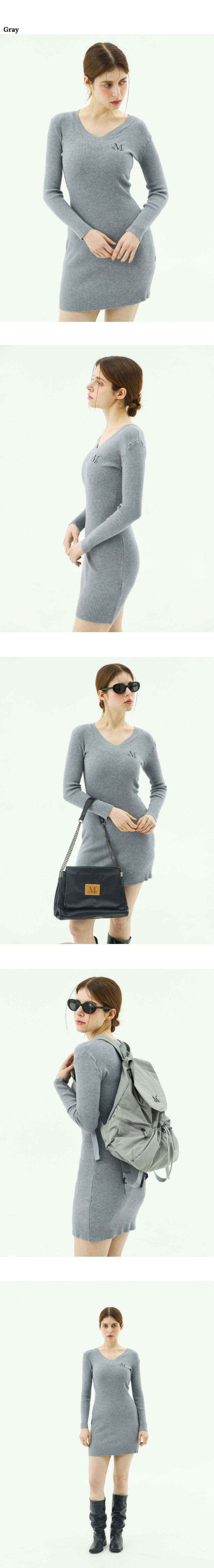 패니 브이넥 골지 슬림핏 원피스 (2컬러)