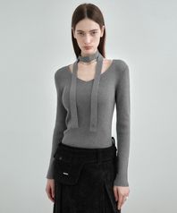 [머플러 SET] 브이넥 슬림 골지 니트 탑 MDKT122_6 Colors