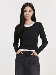 여성 웨일 슬림핏 헨리넥 레이어드 티셔츠_100(10570-131-402-45)