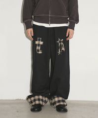 체크 롤업 스웻 팬츠 블랙