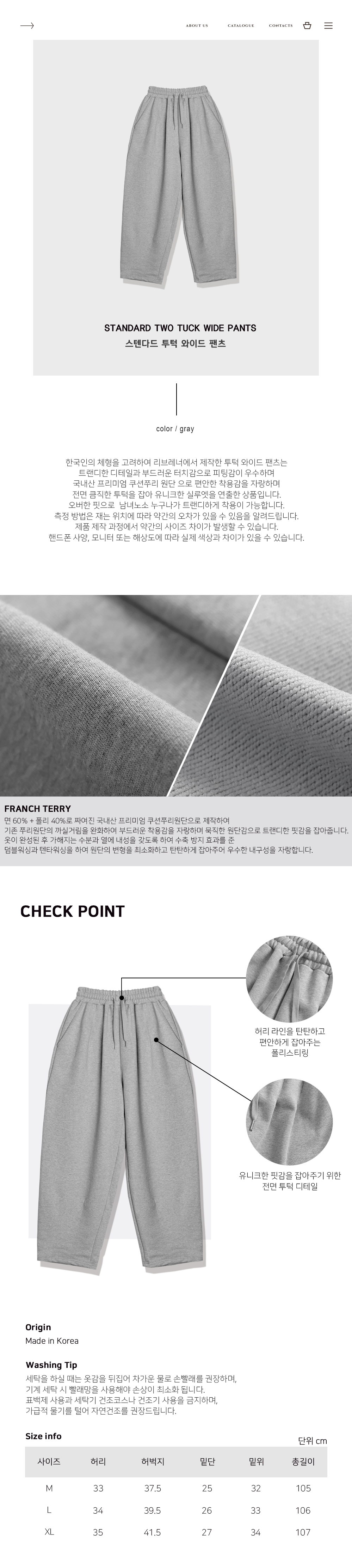 스탠다드 투턱 와이드핏 팬츠 그레이
