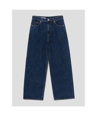 포켓자수 세미와이드 데님 네이비