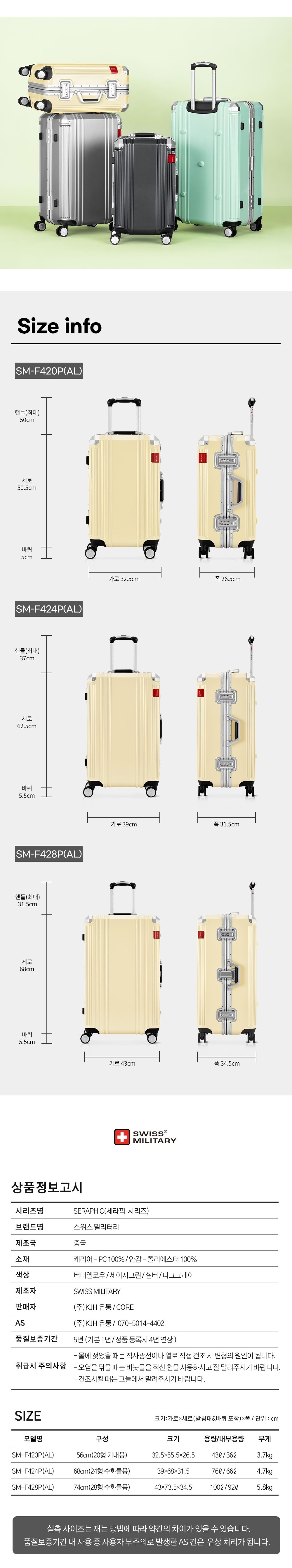 세라픽 20인치 24인치 28인치 알루미늄 여행용 기내용 수화물 캐리어