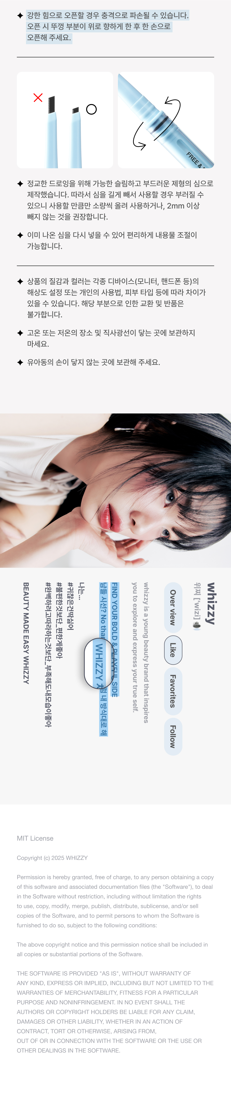 위찌(WHIZZY)는 자유로움과 새로움을 추구하며 나만의 개성을 새롭게 정의하고 자유롭게 표현할 수 있도록 돕는 영 뷰티 브랜드입니다.
