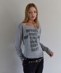 블러 레터링 루즈핏 롱슬리브 (멜란지 그레이)