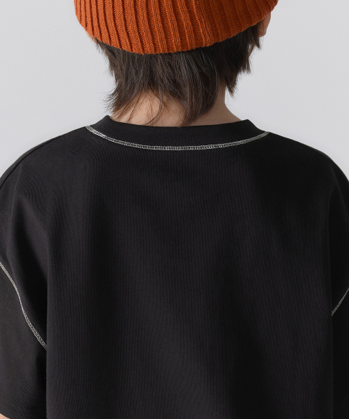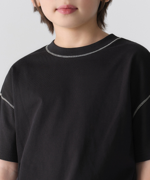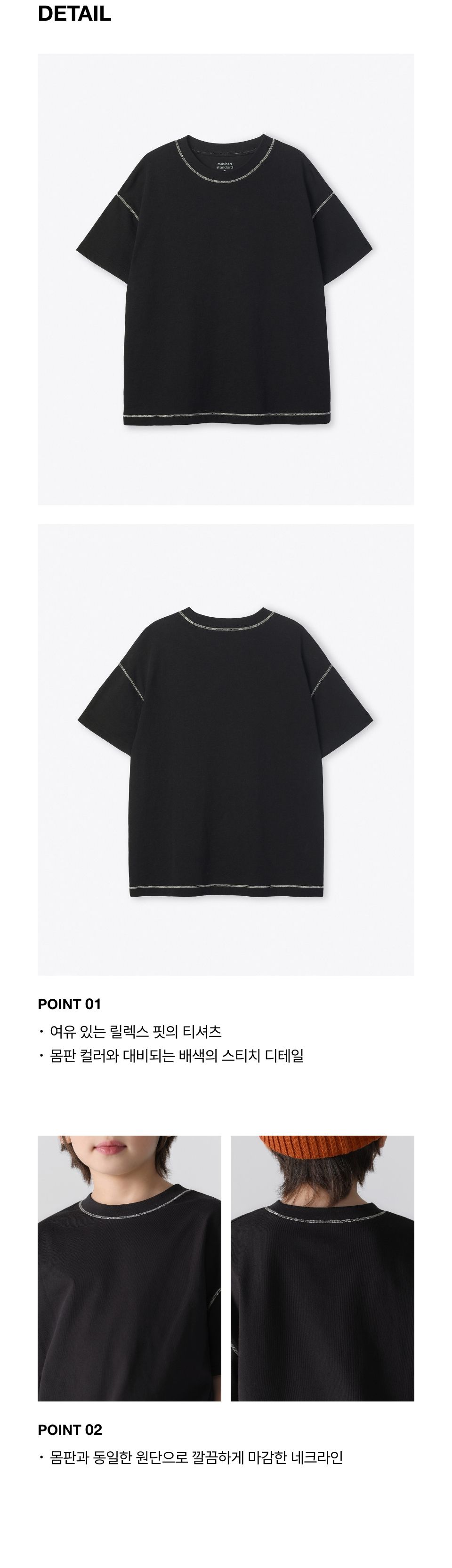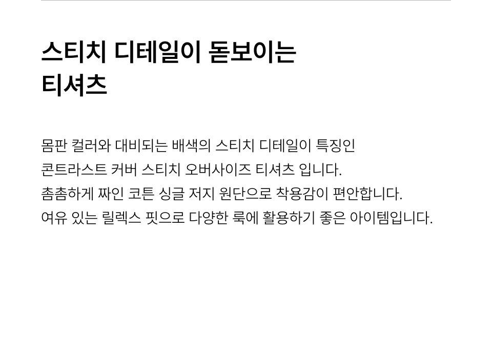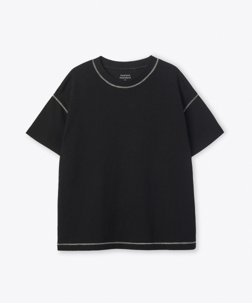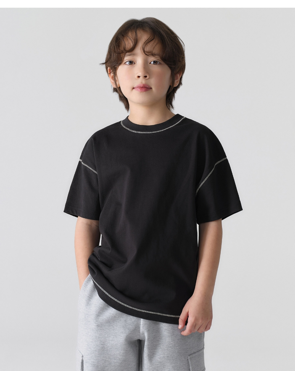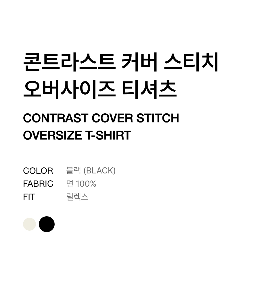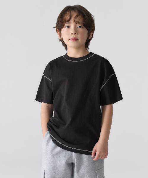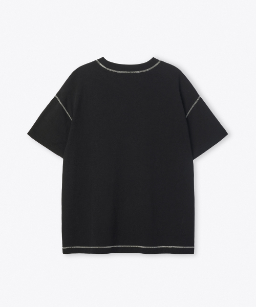 콘트라스트 커버 스티치 오버사이즈 티셔츠 [블랙]