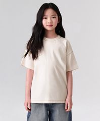 콘트라스트 커버 스티치 오버사이즈 티셔츠 [크림]