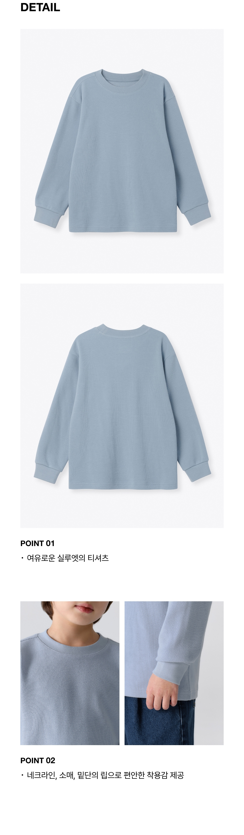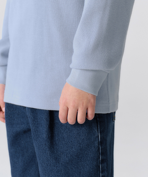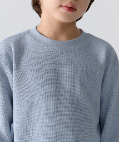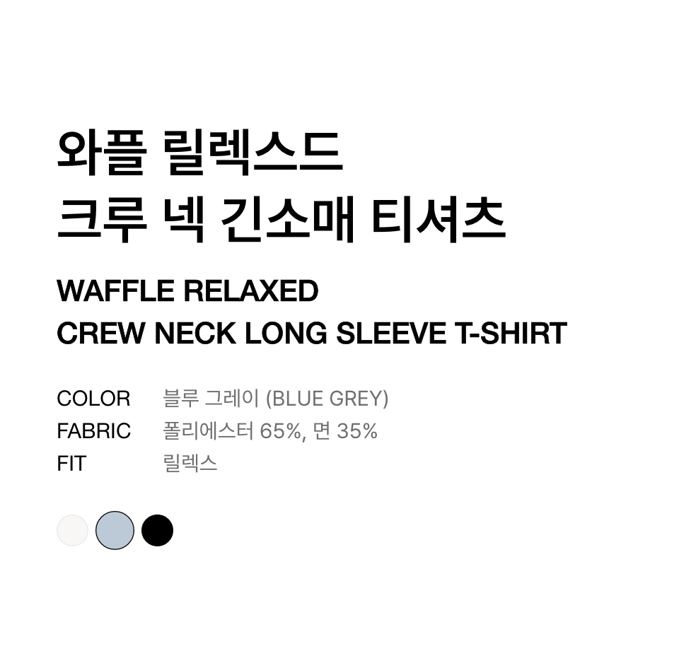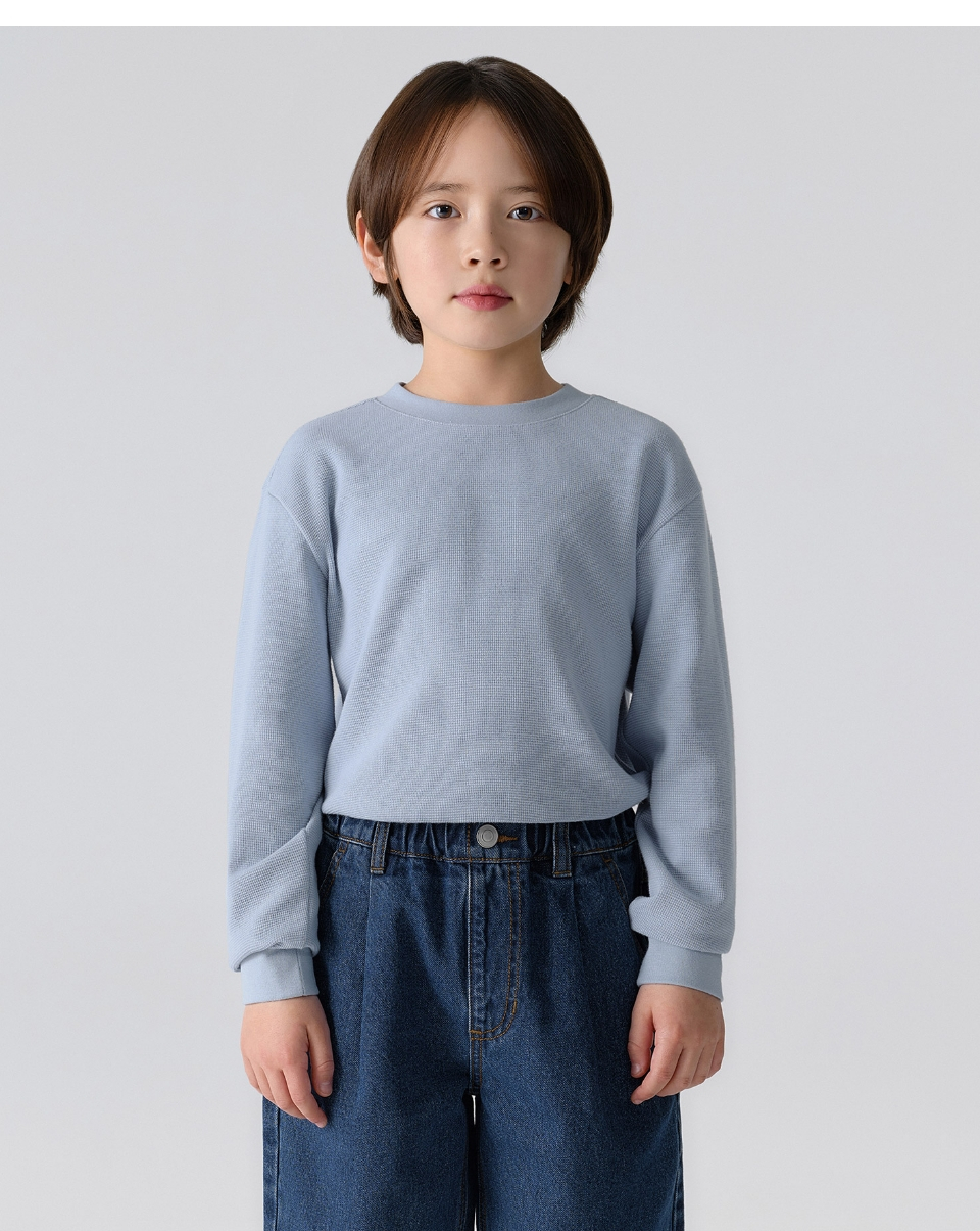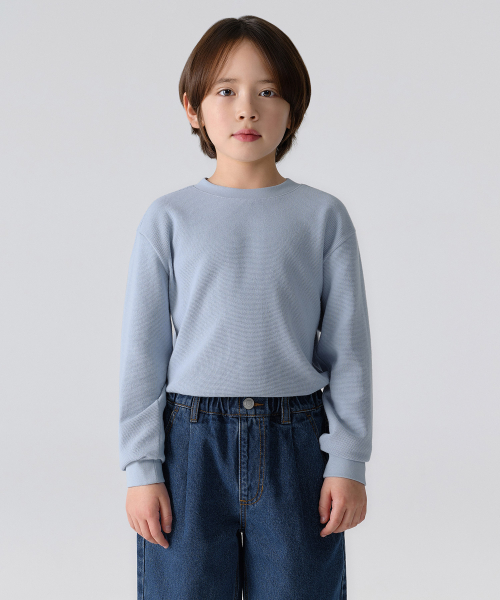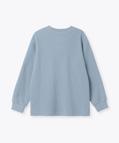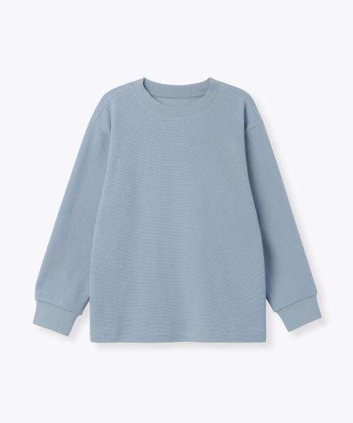 와플 릴렉스드 크루 넥 긴소매 티셔츠 [블루 그레이]