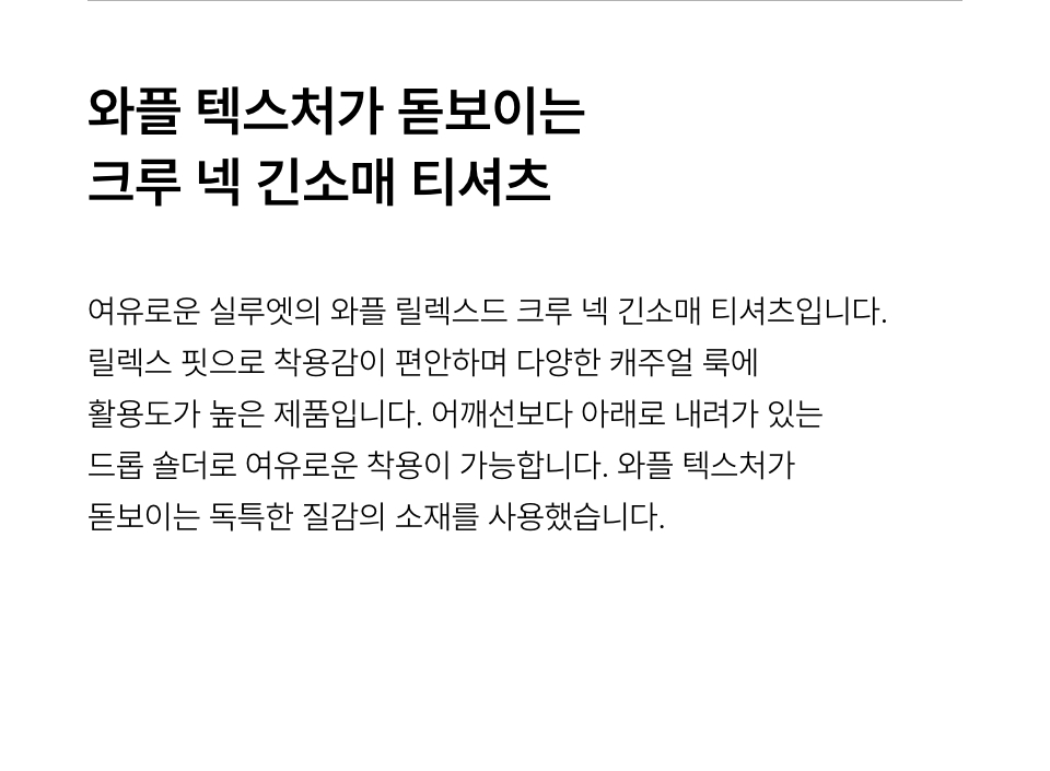 와플 릴렉스드 크루 넥 긴소매 티셔츠 [블랙]