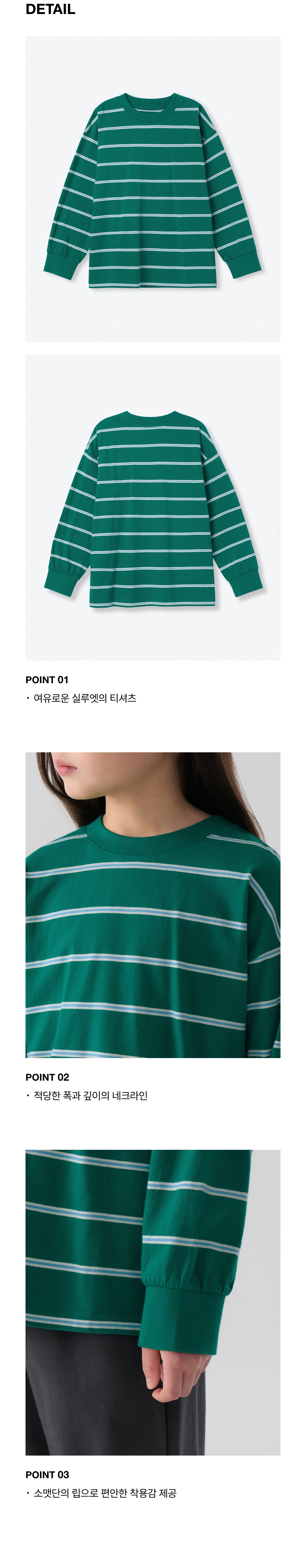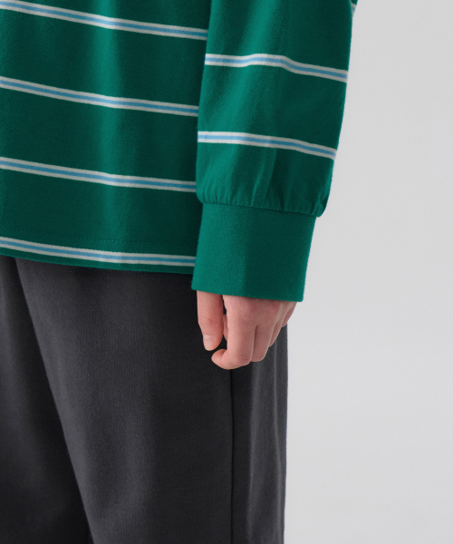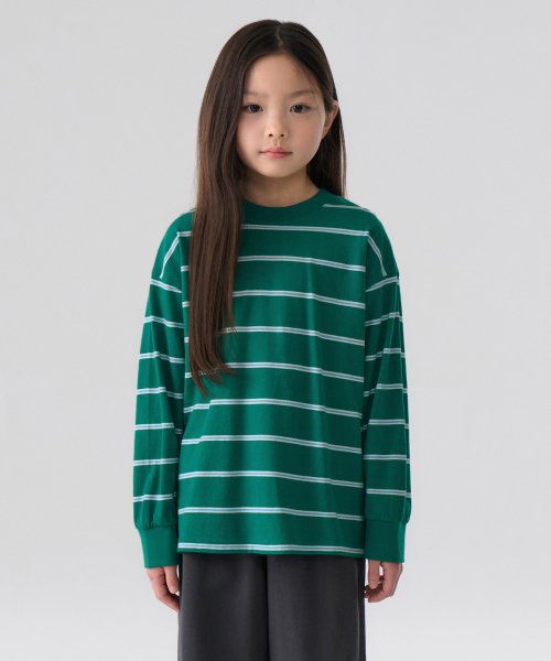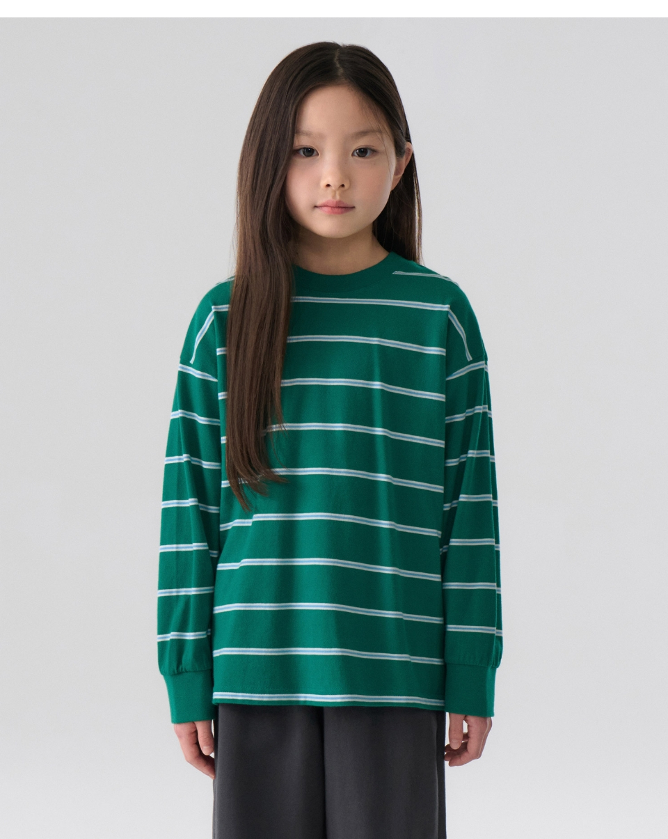 멀티 스트라이프 크루 넥 긴소매 티셔츠 3 [그린]
