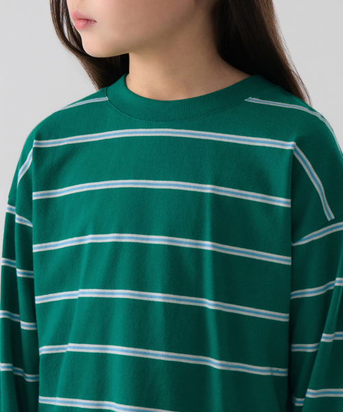 멀티 스트라이프 크루 넥 긴소매 티셔츠 2 [그린]