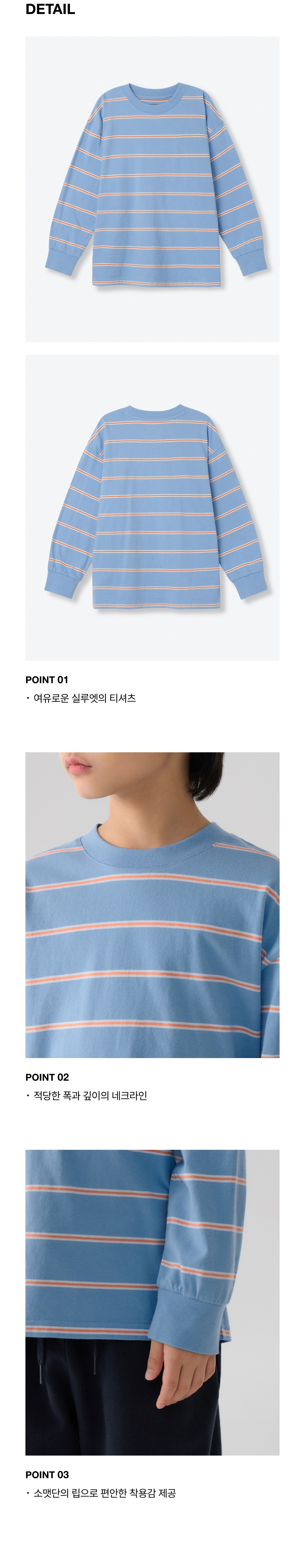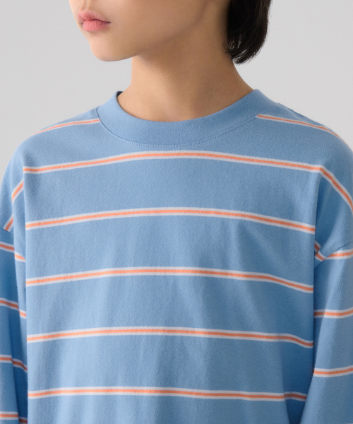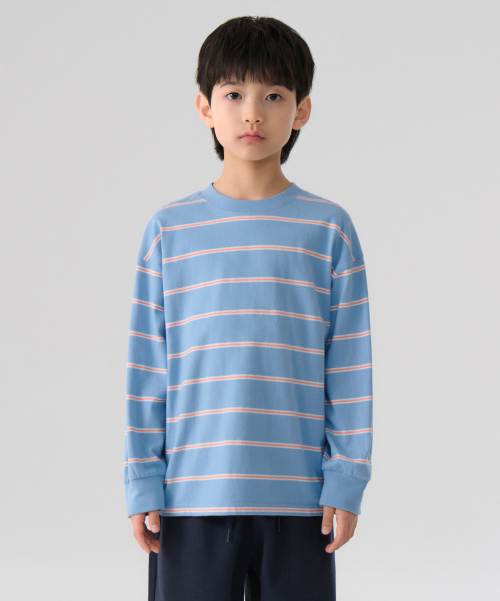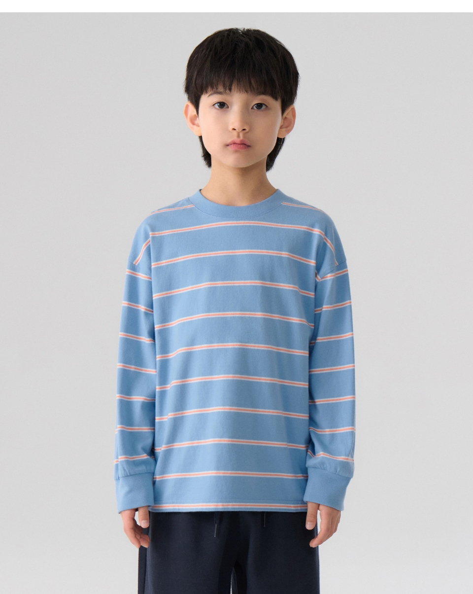 멀티 스트라이프 크루 넥 긴소매 티셔츠 2 [스카이 블루]