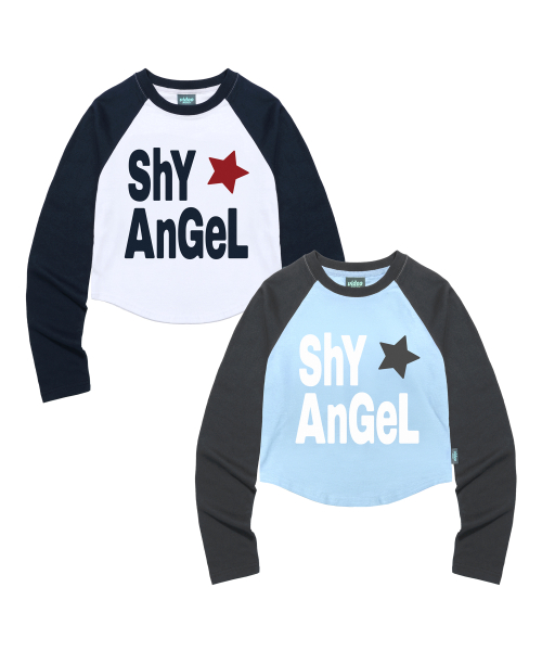 수줍은 천사 크롭 래글런 LS 티셔츠 [네이비]