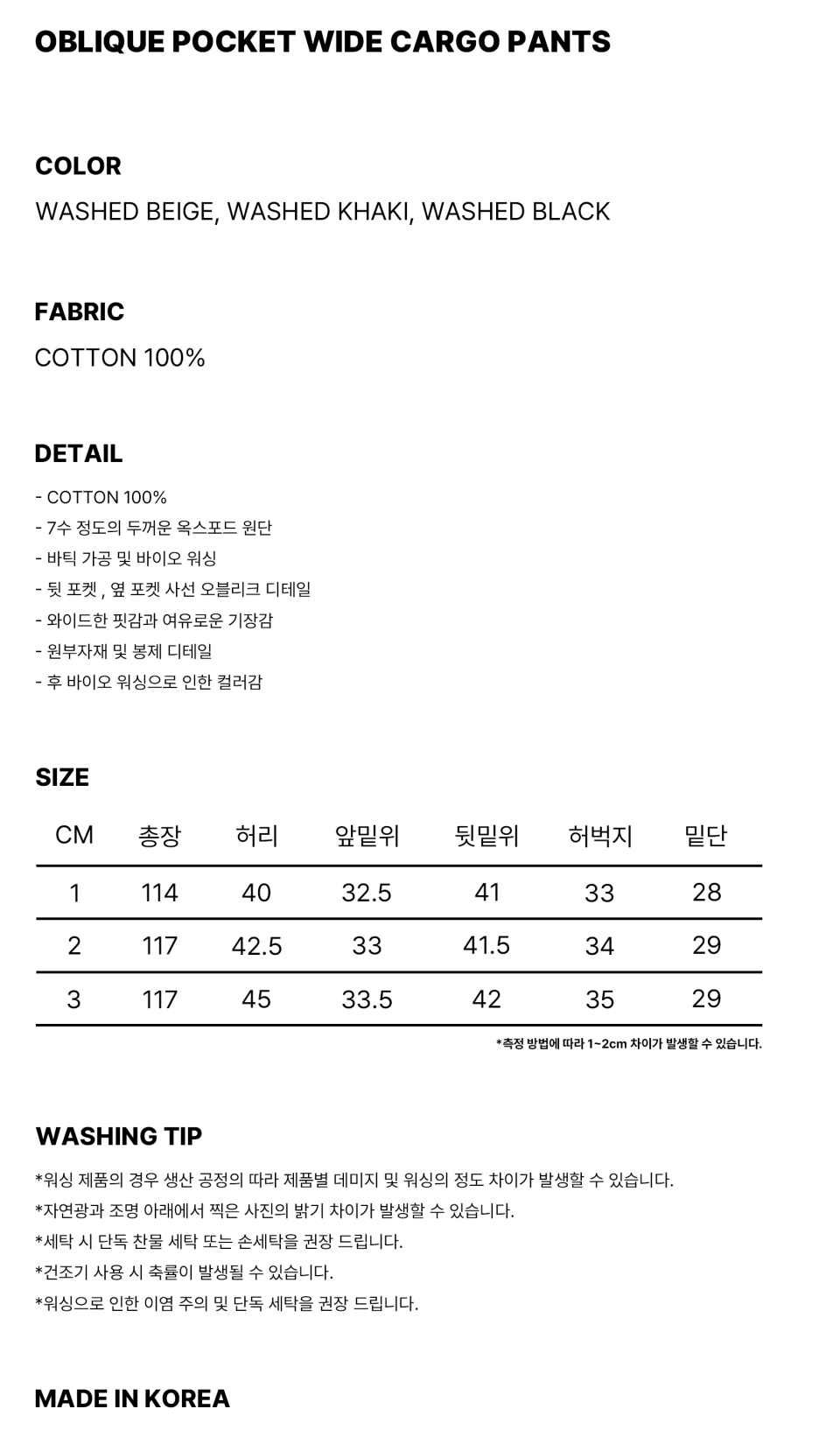*워싱 제품의 경우 생산 공정의 따라 제품별 데미지 및 워싱의 정도 차이가 발생할 수 있습니다.