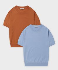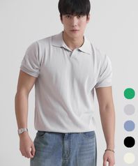 린넨 블렌디드 반팔 카라니트_멜란지그레이