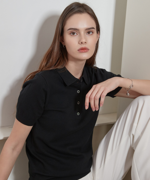 린넨 블렌디드 반팔 카라니트_블랙