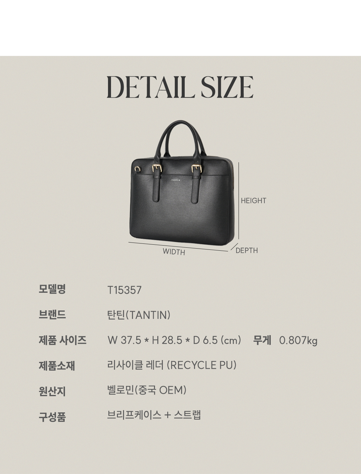 탄틴 테일러 남자 가죽 서류가방 T11003 탄 / 미디엄