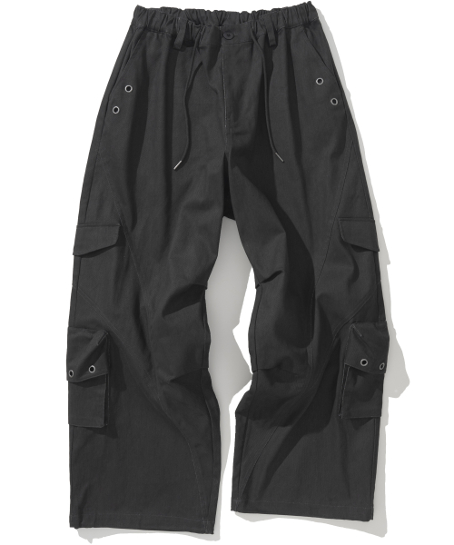 Twill Cotton Incision Cargo Pants - Charcoal