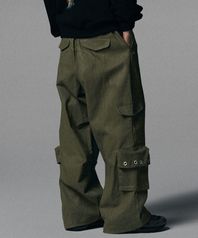 Twill Cotton Incision Cargo Pants - Khaki
