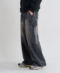 빈티지 워시드 와이드 카펜터 데님 밴딩 팬츠 [흑청]