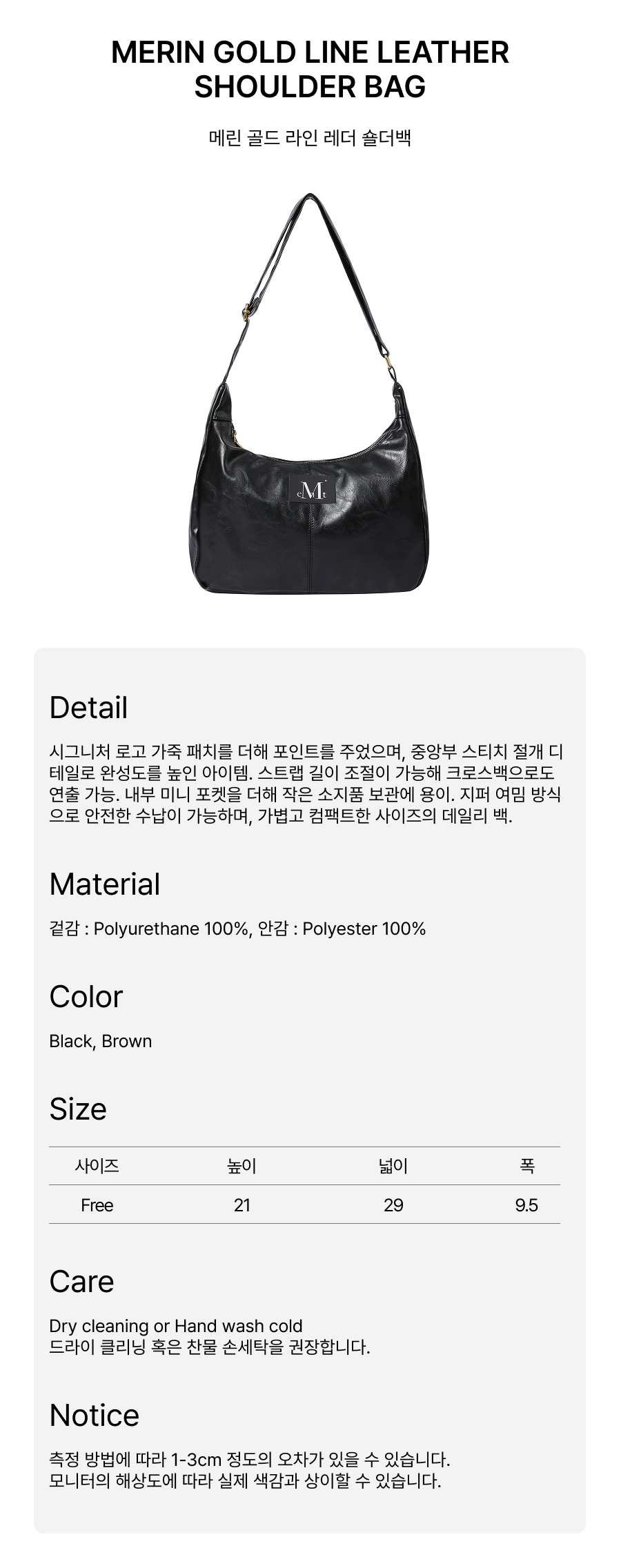 메린 골드 라인 레더 숄더백 남녀공용 (2컬러)