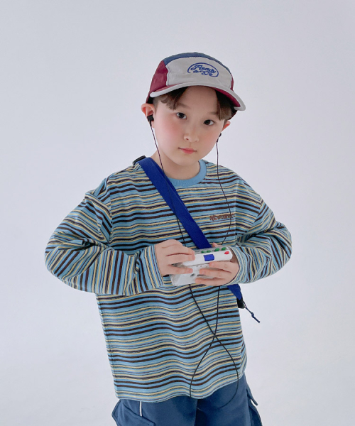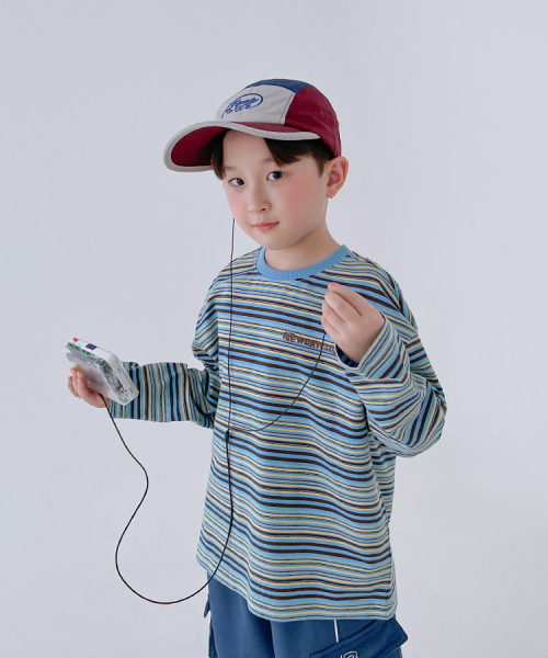 멀티 스트라이프 긴소매 칼라드 티셔츠 [스카이 블루]