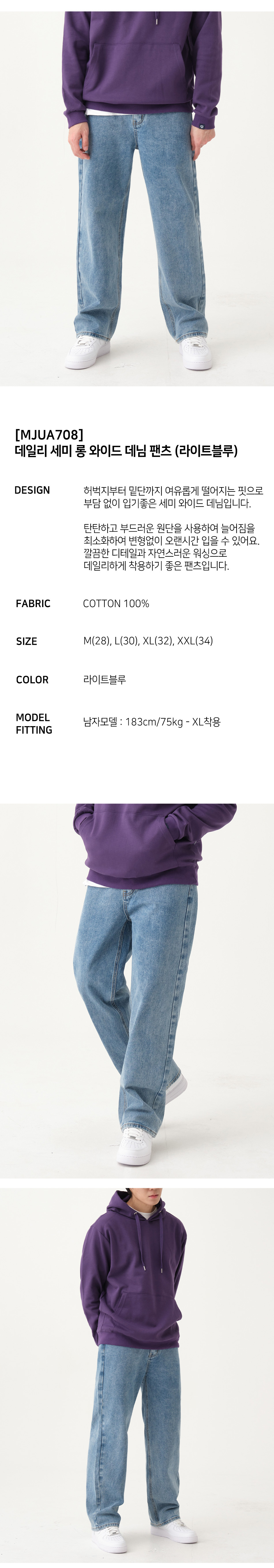 데일리 세미 롱 와이드 데님 팬츠 (라이트블루)
