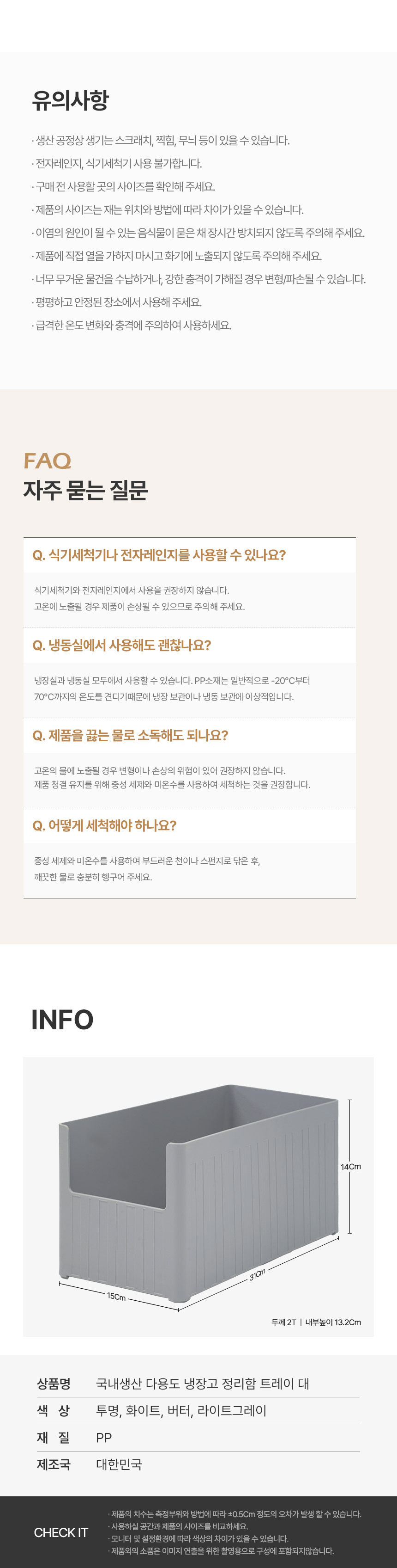 국내생산 다용도 냉장고 정리함 트레이 대2개