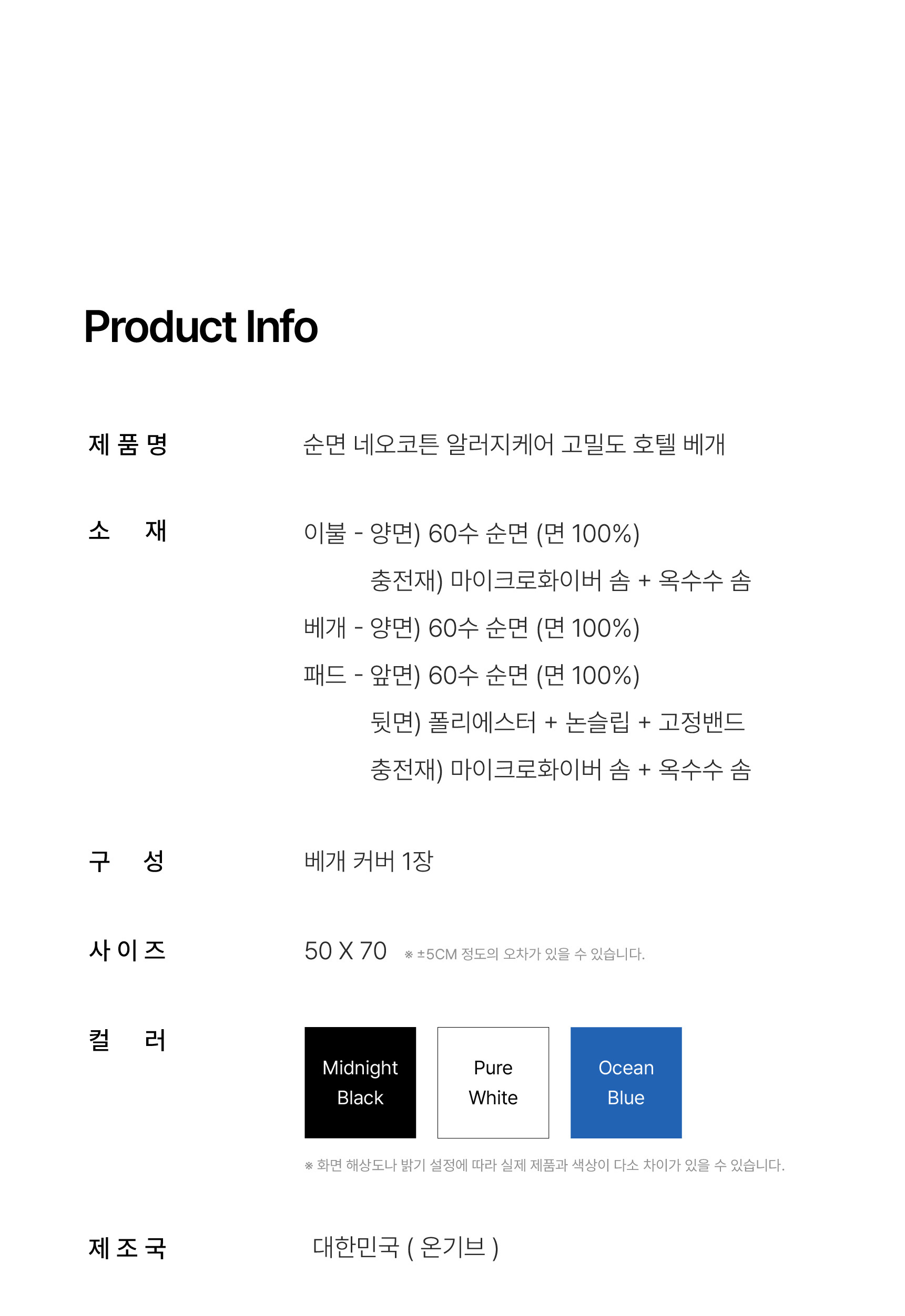 순면 네오코튼 알러지케어 고밀도 호텔 베개커버 3colors