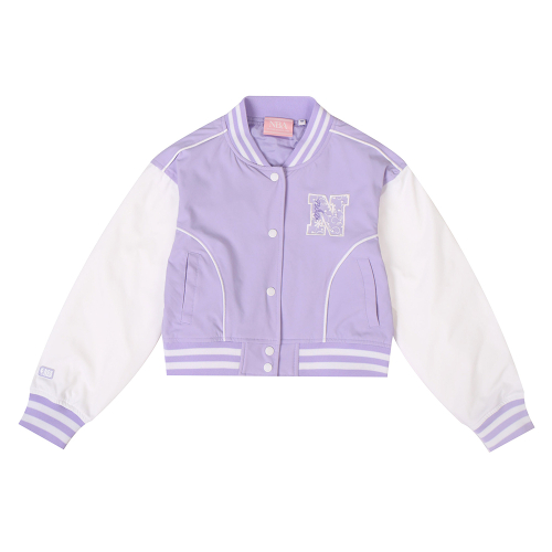 - 크롭기장감으로 여아를 위한 핏으로 제작된 여아 전용 바시티 점퍼