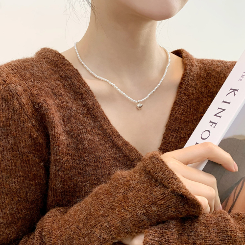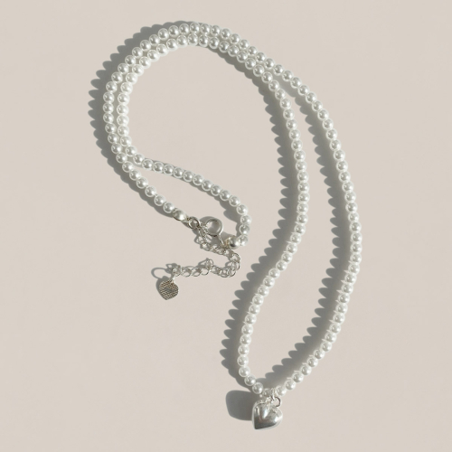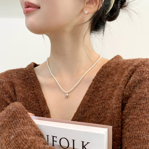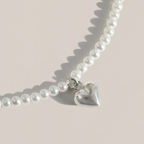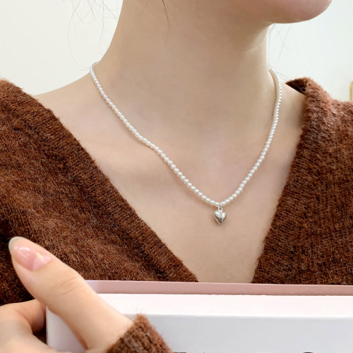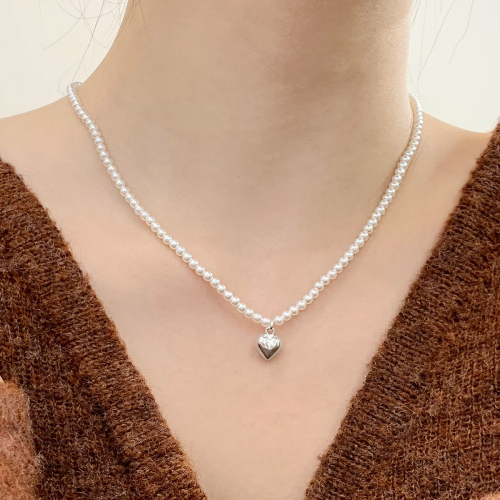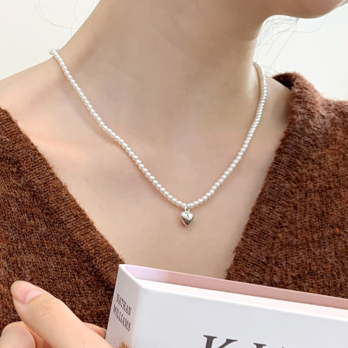 925실버 미니 하트 스와로브스키 진주목걸이 3mm 베베하트